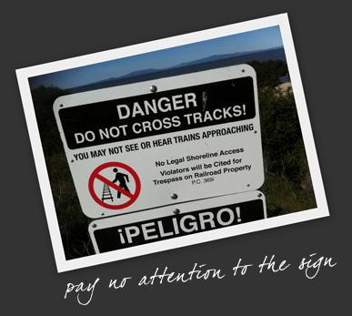 I looked around- a path of thorny bushes and poison oak to the right or the train tracks.